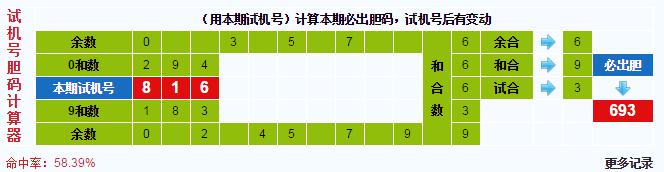 本期试机号和胆码计算器对于大数都相当看重,结合大小走势来看,小数近期出号实力有所提升,不过大数还是坚定的占着主要地位,本期建议继续看好两大一小组合;和值上上期振幅迅速拉动提升,大和值的开出符合走势规律,本期建议看好和值10和16,防24。