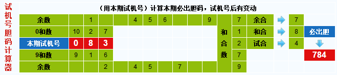 今日3d试机号的开奖号码是083,试机号胆码计算器开出看了784,从试机号跟试机号胆码计算器来看,都有一个8号球,8号球目前是个了6期了,本期是一个中间码,也是一个斜连号,所以本期需要关注;0号球是一个隔期号,隔期号的话还是需要关注的;3号球目前是个了2期,从近期的开奖走势来看,目前有连续开出隔了2期的号码,所以本期的3号球重点关注;4号球目前隔了3期,近期的4有走冷趋势,本期防一下;7号球是上期的开奖号码,也就是重复号,上期开出了1个重复号,本期重复号需要关注。