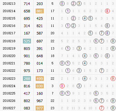 回顾:18227期开奖结果为:977;奇偶形态:奇奇奇;大小形态:大大大;和值:23;跨度2;