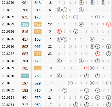 跨度:上期开出跨度6,跨度6在前十五期里属于热门跨度,总共开出四期,连开能力较弱。近十期跨度质合性分布为合-质-质-质-质-质-质-合-合-合,质数跨度在整体开出数量上要高于合数跨度,当前合数跨度又已经连开三期,参考近十五期里合数跨度的连开情况,本期继续连开能力有限,建议主看质数跨度,防合数跨度连开,综合推荐:3 4 5 7。