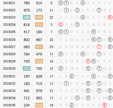 福彩3d第2018235期开奖结果:828;奇偶形态:偶偶偶;大小形态:大小大;和值:18;跨度6。苏会文结合近期福彩3d开奖走势对第18236期进行以下分析: