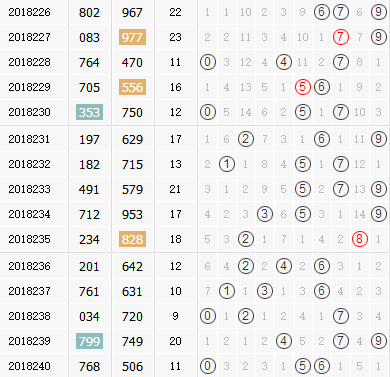 跨度:上期开出跨度6,跨度6在前十期里属于热门跨度,总共开出四期,具有一定连开能力。近十期跨度质合性分布为质-合-合-合-合-合--质-质-质-合,总体合数跨度的连开连续性要优于质数跨度,近五期里质数跨度的发展要强于合数,上期合数跨度重新出现,本期值得看好合数跨度强大的连开能力再次开出,本期建议主看合数跨度,防质数跨度,综合推荐:3 4 5 6。
