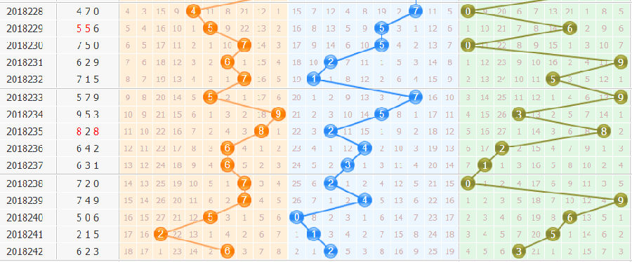 重复号:623的开出使得号码236走热。本期关注重复号码个数为2个,关注号码36重复。