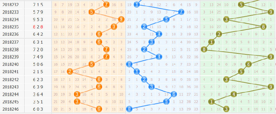 重复号:603的开出使得号码036走热。本期关注重复号码个数为2个,关注号码06重复。