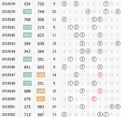 跨度:上期开出跨度7,属于一个冷门跨度,以往连开性不是很好所以本期暂时不看好连开。近十期跨度质合性分布为合-质-合-合-合-合-质-合-合-质,合数跨度无论是从出号的数量上还是出号的连续性上都是远远碾压质数跨度的,上期质数跨度虽然重新开出,但是根据目前跨度质合发展的走势,本期合数跨度的开出几率仍要胜于质数,建议主看合数跨度,适当防质数,综合推荐:3 4 5 8。