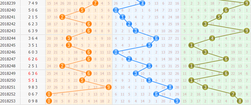 百位:上期的百位开出0号球,偶数号码连续开出,分析近期的百位走势来看,偶数号码在百位上一直很强势,本期也要继续关注偶数号码。