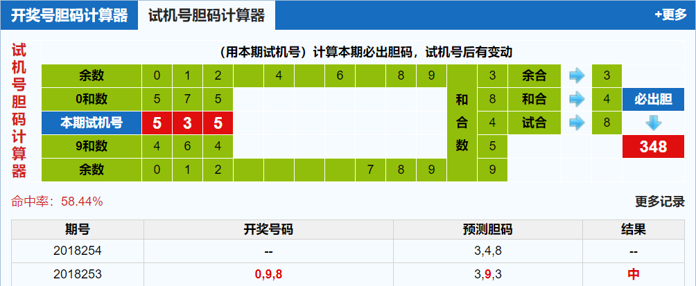 今晚的试机号开出了组三形态535,两大一小组合,全奇组合,和值开出13,跨度开出2,202路号码出现。从试机号开奖号码走势图上分析,今晚开出的试机号3和5都是昨天出现过的号码,尤其是近期的号码5,出现的频率飙升,本期结合号码走势分析,建议大家重点关注其邻码走势。本期试机号胆码计算器胆码推荐:348,今晚的试机号胆码计算器推荐的是组六形态,两小一大组合,其中号码3是今晚的试机号号码,4号球目前间隔9期没有出现,已经是处于走冷的阶段了,本期出现的几率不是很大,建议小防即可。另外号码8本期作为重复号,近期走势开始升温,本期建议大家重点关注其邻码走势,小防重复开出。