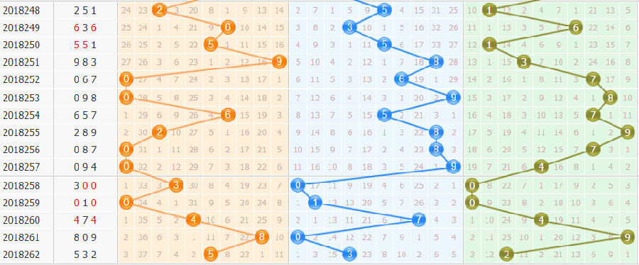 ③012路分析:为0路出1个,1路出0个,2路出2个;本期看好0路球出号,关注3码,综合分析看好,001 011路组合出号。