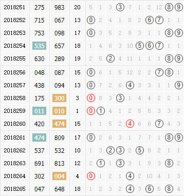 和值:上期和值开出18,为一个0路和值。前十期里的012路走势为0-1-0-1-0-2-1-0-1-0,近期开出的和值以0路和1路为主,时期以内2路和值仅出现一次,势态低迷。而近几期又出现了1路和0路交替的局面,所以在上期开出0路和值之后,本期应当重点关注1路再次开出。本期推荐和值:10 12 13 16 17 19 20