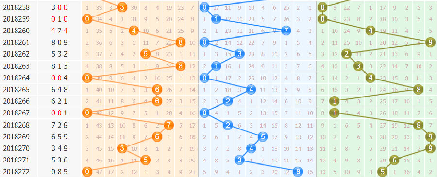 ③012路分析:为0路出1个,1路出0个,2路出2个;本期看好2路球出号,关注2码,综合分析看好,002 022路组合出号。