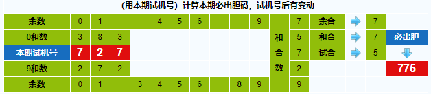 本期试机号胆码计算器推荐胆码:775