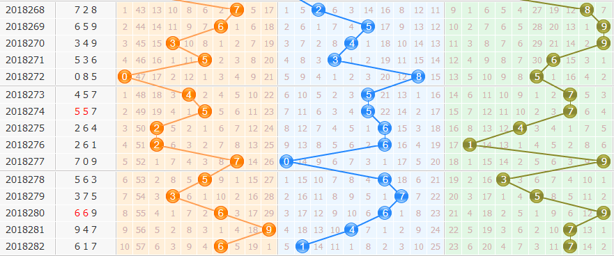 ③012路分析:为0路出1个,1路出2个,2路出0个;本期看好0路球出号,关注0码,综合分析看好,001 011路组合出号。