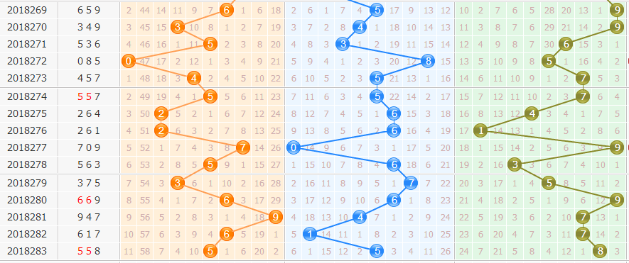③012路分析:为0路出0个,1路出0个,2路出3个;本期看好2路球出号,关注8码,综合分析看好,012路组合出号。