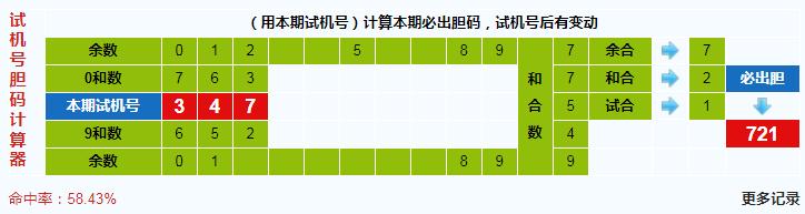 本期3d试机号胆码计算器给出结果:721