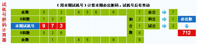 3d试机号胆码计算器:今晚必出胆码712
