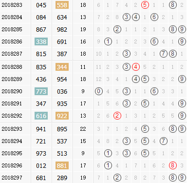 福彩3d第2018297期开奖结果:289;奇偶形态:偶偶奇;大小形态:小大大;和值:19;跨度7。苏会文结合近期福彩3d开奖走势对第18298期进行以下分析: