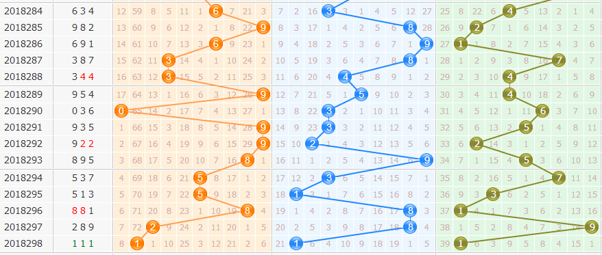 个位数是最难判断的,开出1到9有2次,到3、8、7有1次,重复1次。首先排除1路的号,再排遗漏期数多的0、8,几率小的9、3,本期选择2、3、5。