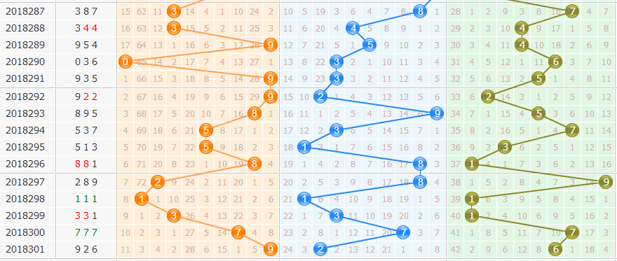 个位数是最难判断的,开出6到5有2次。首先排除0路的号,再排遗漏期数多的8,几率小的7、1,本期选择2、4、5。