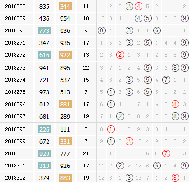 福彩3d第18302期开奖结果:883,为组三形态,奇偶形态:偶偶奇;大小形态:大大小;和值:19;跨度:5。