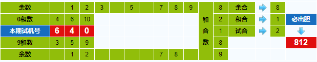 本期胆码计算器与试机号没有重合的号码。结合近期试机号命中开奖号走势图来看,近期试机号的命中率有待提高,不过上一期的命中是个不错的趋势,不排除试机号击中开奖号的概率在逐步提升,本期对试机号稍作关注。
