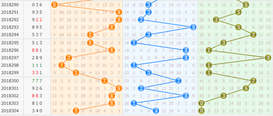 ③012路分析:为0路出2个,1路出1个,2路出0个;本期看好1路球出号,关注1码,综合分析看好,011路组合出号。