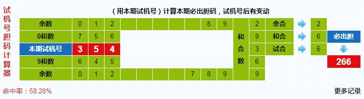 上期号码开出了845,结合试机号和胆码计算器结果来看,5号球现在出号优势很大,在遗漏了9期归来之后,加上它本身爆发能力,继续出号的可能性很大,6号自从那次爆冷之后一直在等待回暖的时机,本期看好6号。