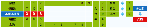 本期试机号胆码计算器推荐胆码:739