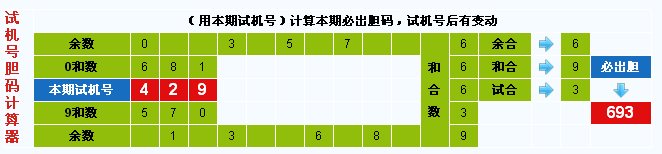 3d试机号胆码计算器:今晚必出胆码693
