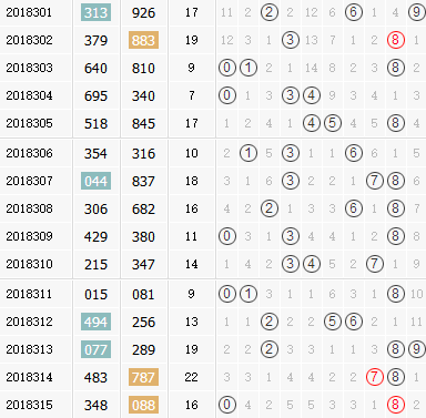 福彩3d第2018315期开奖结果:088;奇偶形态:偶偶偶;大小形态:小大大;和值:16;跨度8。苏会文结合近期福彩3d开奖走势对第18316期进行以下分析: