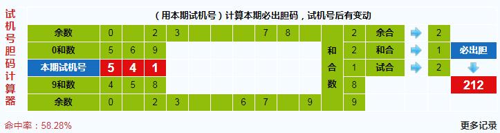 本期3d试机号胆码计算器给出结果:212