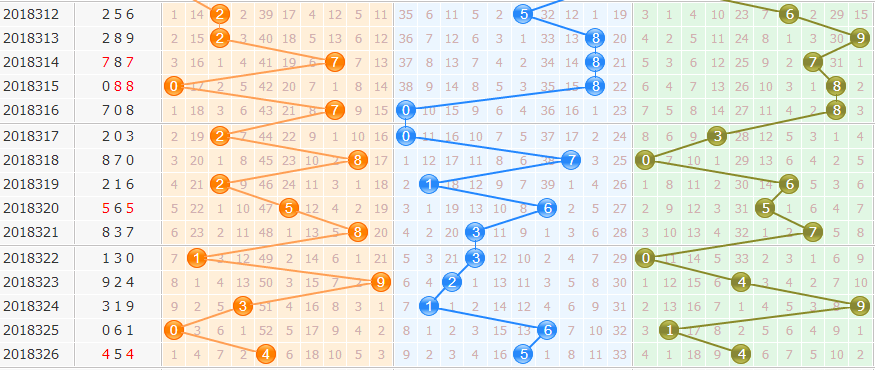 ③012路分析:为0路出0个,1路出2个,2路出1个;本期看好2路球出号,关注5码,综合分析看好,002 022路组合出号。