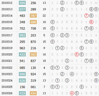 回顾:18326期开奖结果为:454;奇偶形态:偶奇偶;大小形态:小大小;和值:13;跨度:1;