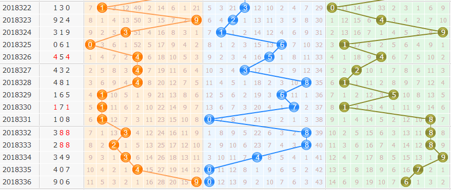 百位号码:上期百位开出号码9,这次百位突然大码突袭,具体是遗漏12期的冷码9,30期内大码仅上奖9期,下期应当忽略,根据前期的号码走势分析,本期重点推荐百位胆码:125678。