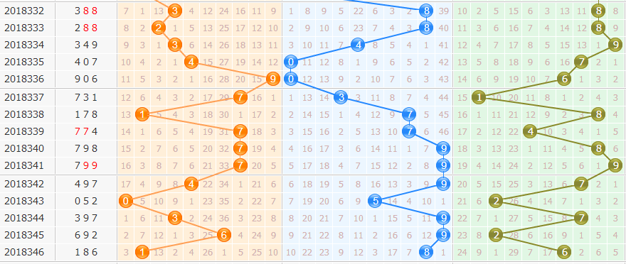 十位同上,近50期中,开出8到1、4有2次,到5、0、6有1次,重复4次。首先排除2路的号,再排遗漏期数多的1、6,几率小的9、7,本期选择0、3、4。