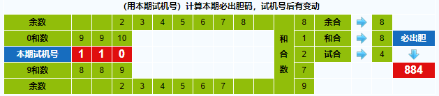 本期试机号胆码计算器推荐胆码:884