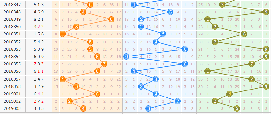 上期开出435,和值12,1偶2奇,1大2小,百位4遗漏12期、十位3遗漏23期,个位5遗漏31期,从整个出号来说,总遗漏值达到66期,说明有较冷的号出现。而除3余数形态102路。