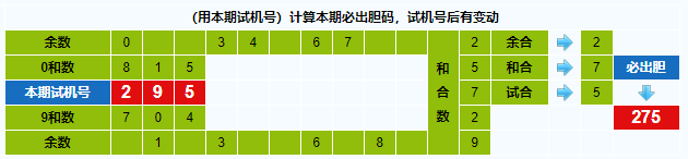 本期试机号胆码计算器推荐胆码:275