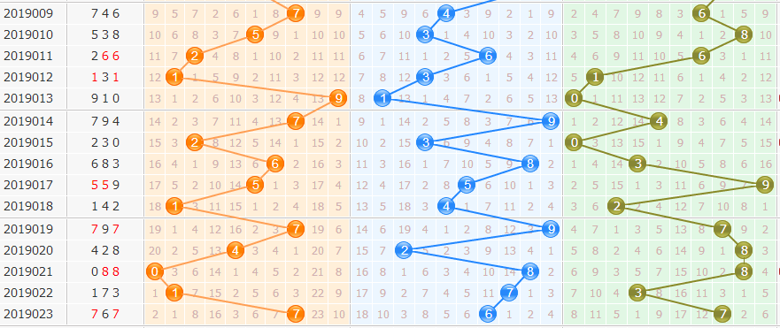 个位数是最难判断的,开出7到6、2有2次,到1、9、8有1次。首先排除1路的号,再排遗漏期数多的5、6,几率小的3、8,本期选择0、2、9。