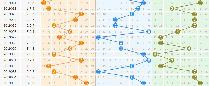 ③012路分析:为0路出0个,1路出0个,2路出3个;本期看好0路球出号,关注9码,综合分析看好002、022路组合出号。