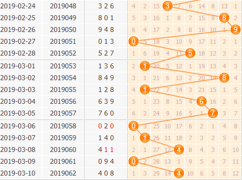 百位上期开出小号4,最近百位的小号走势很是热门,最近已经是连续开出了五期,按照前期的走势分析,本期百位的小号走势应该会开始降温了,预计出号位置本期会小幅度转移,建议大家重点关注中大号爆出,小防小号连开。金手指本期结合号码走势分析,不太看好的百位的重复号走势,建议大家百位本期首杀一码:4。最近的号码2在百位也是遗漏多期,属于比较严重的走冷状态,本期应该也是不会出现的,本期建议重点杀号码2。