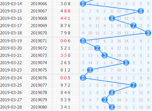 十位上期开出小号4,邻码隔期号出现,最近十位的出号连续集中在走势图中间位置,本期不太看好中小跨度号码继续出现,预计本期出号位置会有比较大的动作,建议大家重点杀十位邻码。本期太阳风根据十位杀号公式:上期开奖号码跨度加和尾之和取个位杀本期十位一码:3+8=11,本期十位重点推荐杀一码:1