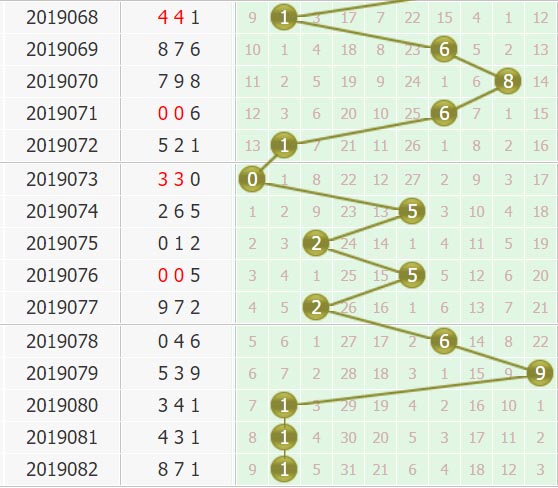 个位上期开出重复号1,目前在个位连续开出了三期,本期肯定是不会连续出现的,所以不太建议本期百位继续关注这个号码1。目前个位小号是连续出号的,参考近期的个位号码走势分析,本期比较看好中小跨度号码出现,结合号码走势分析,本期喜太郎重点推荐个位胆码:04567