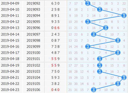 十位上期开出了4号球,分析十位上的走势来看,偶数号码开出,而且偶数号码也开始了连开,而且这一次偶数连开是在奇数大连开之后的,可以重点看好偶数出号。4号球上期开出,而且4号球是有走热趋势的,看好4号球的活跃;8号球上期没有开出,但是之前是有隔期出号的,留意8号球;5号球还是一个热号,本期也要看好5号球的热开。
