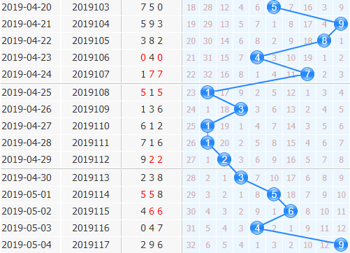 十位上期开出号码9,号码9在十位的走势还是比较偏冷的,本期连续开出的几率不大,基本上是可以不关注的,建议大家可以重点杀一码:9。从近期的十位号码走势分析,整体出号位置右移明显,大号走势本期应该还是会连续开出的,建议大家小心设防。本期根据十位杀号公式:上期开奖号码跨度加和尾之和取个位杀本期十位一码:7+7=14,本期十位重点杀一码:4