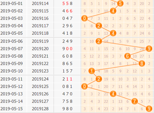 百位开出了9号球,从百位走势图来看,号码一直都是走大的,现在已经是开到了最大号9号球的位置,之后号码肯定是走小,不过按照这个趋势,走小的幅度也是很缓慢的。7号球是之前开出,根据对称走势,本期可以小防7号球的表现;4号球开出常常会有小间隔出号,本期可以留意一下;6号球近期开出也是慢慢在升温的,本期可以关注一下6号球。