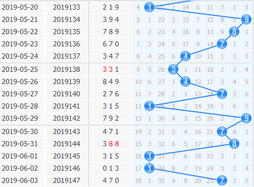 十位上期开出了7号球,分析十位上的走势来看,奇数号码连开,当前是有三期都是奇数号码开出,上一次奇数只有四期开出的,本期也要多看好奇数出号。1号球和9号球都是跟7号球关联最多的,开出也是比较强势的,本期也要看好这两个号码的表现;7上期开出也要小防7号球的复开,因为近期十位上也有复开的经历在,可以小防。