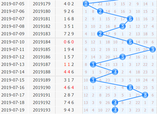 十位上期开出了4号球,结合走势来看,十位上号码是复开了,之前十位也是不怎么复开的,这一次开出接下来号码很大可能是要走冷,3号球就在4号球边上,也是当前最冷的号码,可以留意一下;7号球也是,一个大冷号,本期小防一下;0号球开出也都是大间隔,也可以留意。