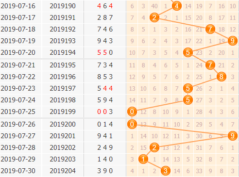 百位上开出的是3,0路号码开出,百位上0路号码开出比较强势,之前开出都是带着连开的,本期也要重点看好0路号码的再开;9号球近期也是有升温的迹象的,可以多留意一下,3号球上期是开出的,百位上复开也频繁,可以看好3号球的再开;其次开跟在0路号码开出就是2路号码比较多了,本期也可以看好一下2号球的表现,建议看好2369。