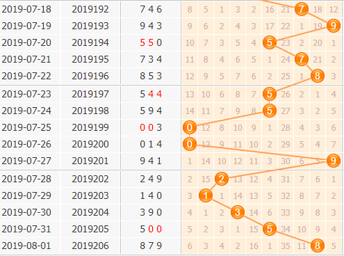 百位上期开出大号8,从百位近期的号码走势分析,近期出号位置一路攀升,大号目前连续开出两期,后期预计出号位置还是会集中在大号区域,本期比较看好出号跨度保持中小振幅变化,金手指结合号码走势分析,不太看好中小号走势,大家在选择杀号的时候可以重点选择关注一下中小号区域,本期具体推荐百位杀三码:128