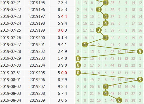 个位上期开出了6号球,分析个位上的走势来看,偶数号码继续开出,个位上偶数号码开出强势,但是连开也只有三期,上期就是偶数连开的第三期,这一次就要看好奇数出号了。5号球就在4号球和6号球的中间,而且是一个遗漏了49期的大冷号,本期小防冷号的回暖;9号球这两次开出有点稳定,也可以留意一下;4号球作为一个热号,也要多加关注。本期建议看好胆码1459。